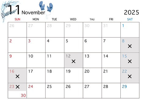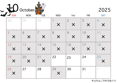 2025年10月・11月の予約スケジュールを更新いたしました。